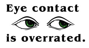 Autism and eye contact...A simple message about the importance of eye contact. "Eye contact is over rated" with two eyes looking to the side.